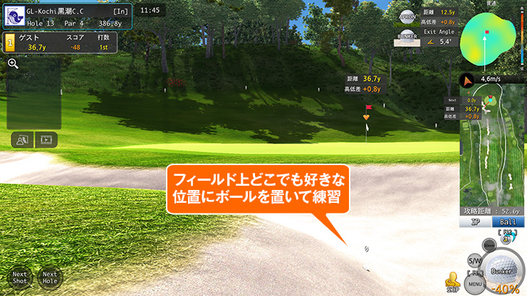 従来のフィールドトレーニングでは限られたコースでしか利用できなかった機能が、名称変更とともに収録されている全てのコースでフィールド内の好きな場所から自由に打つ場所を選ぶことができるようになりました。