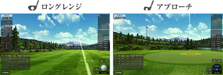 練習モードもグラフィックがリアルになり、2眼の高速カメラがスイングの縦軸と横軸を瞬時に計測して弾道をリアルに再現!