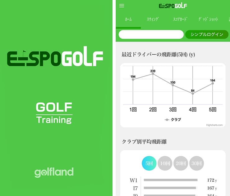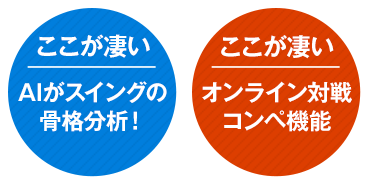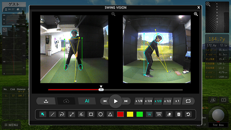 練習データ、ラウンド戦績、スイングモーションを保存してスロー再生やラインを引くなど、便利機能が多数あります。