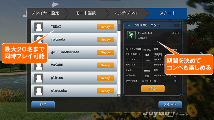 オンライン対戦には「コンペ機能」も搭載しておりますため、店舗主催のゴルフコンペを企画するなどイベントにご利用ください。
