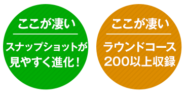 従来の練習モードより飛距離やヘッドスピードなどの計測がより詳細になっただけでなく、クラブがボールに当たる瞬間を撮影したスナップショットの拡大機能を使うことで、ヘッドの動きをより鮮明に確認できます。