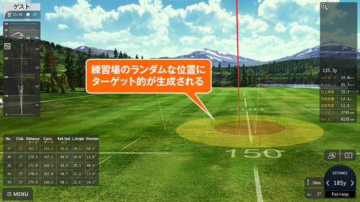 新たに追加された新練習機能。10~300ヤードの中からランダムに的が生成され、そこに打ち込むゲーム感覚の練習モードです。